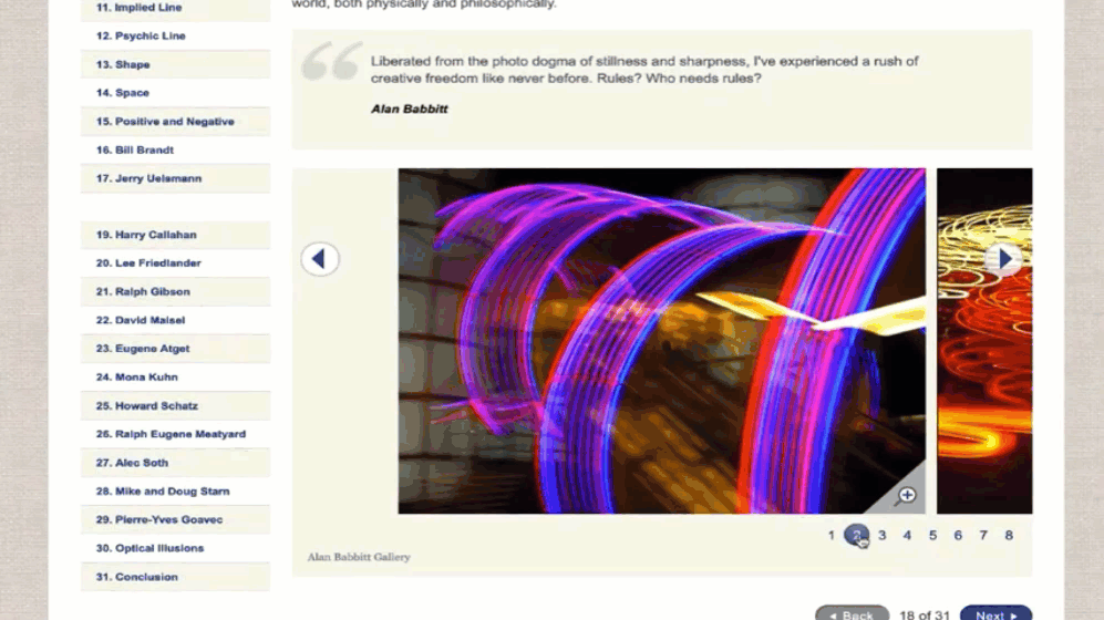 Established in 1929, Academy of Art University is the largest accredited private art and design school in the US. Here I converted traditional art and design classes to internet-based courses that are a mix of lecture content, custom videos, screen captures, written content, recorded audio, and interactive slideshows.